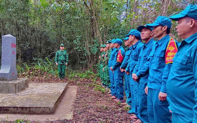 河静省边防部队版降边防屯协同巡逻守护界碑(图片来源:人民军队报) |