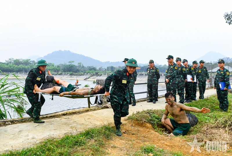 演练过程中,指导委员会和教官密切监督、指导和检查了整个过程,重点关注与军事医疗战术相关的方面,例如:伤员分类、急救和治疗,医疗站人员和设备的组织以及为伤病员提供急救的技术训练……他们还设置了主题供学员现场应对,磨练他们在为渡河部队提供医疗支援时可能遇到的各种情况的技能和方法。