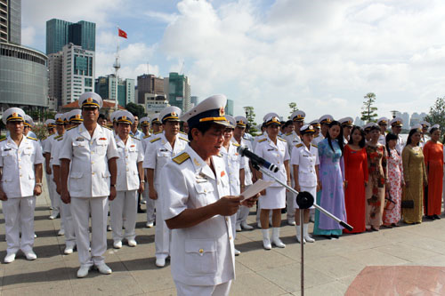 人民军队 记者明阮报道:6月12日,在胡志明博物馆胡志明市分馆,西贡新港总公司举行向胡志明主席报功的敬香仪式。西贡新港总公司党委书记、副总经理吴光仲大校主持仪式......
