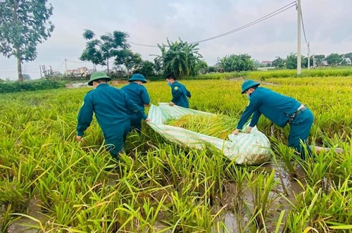 遵守隔离和封锁规定,北宁省数万户家庭不能到田里收割稻谷。面对此情况,北宁省军事指挥部已指导各地方民兵力量及时帮助农民收割农产。