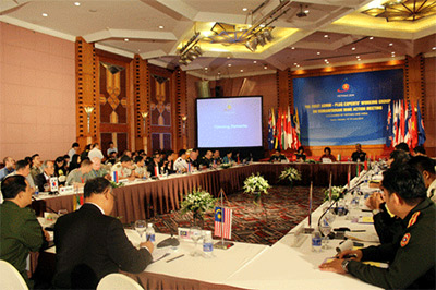 | 东盟防长扩大会议人道主义地雷行动专家小组第一次会议场景(图片来源:人民军队报) |