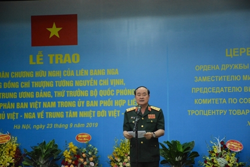 阮志咏上将对俄罗斯联邦国家和政府表示感谢,并肯定,这是俄罗斯联邦国家对他个人和越南国防部给予的特别关心。阮志咏上将表示,历经30多年建设、奋斗与成长,越俄热带中心是有效的军事科技合作模式并在越俄关系中占有特殊地位。其中,中心已完成数百个对热带生态系统的生物多样性具有很高的实用价值的军事科学研究项目,发展可抵抗热带环境影响的新材料技术、预防和控制危险热带疾病的生物医学措施等。