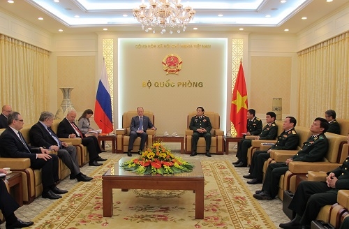 人民军队:3月15日下午在国防部总部,越南国防部部长冯光青大将会见由俄联邦安全委员会秘书Patrushev Nikolai Platonovich为首,正在访越的俄联邦安全委员会秘书团。