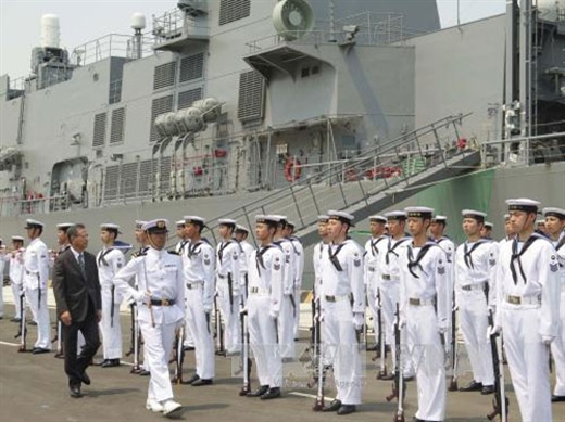 | 日本海上自卫队驱逐舰欢迎仪式(图片来源:越通社) |