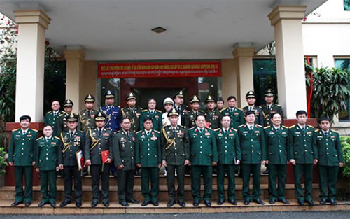 | 国防学院领导与柬埔寨军事学员合影(图片来源:人民军队报) |
