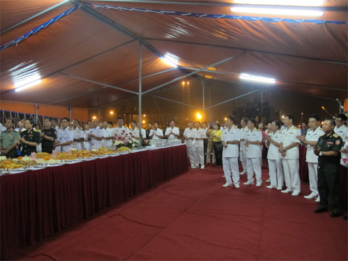 宴会开始30分钟后,海军文工团进行了音乐演奏。越南民歌、印尼和其它国际歌曲飘扬着,大家共同跳舞。