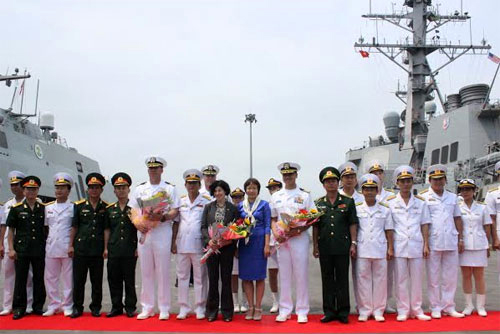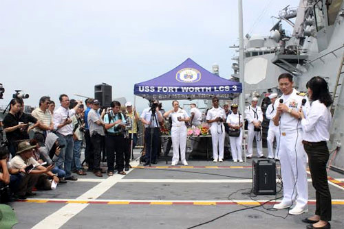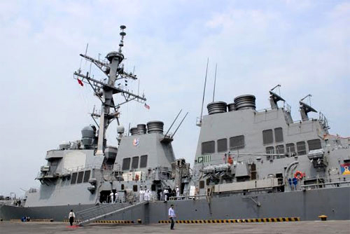 人民军队记者雄中报道:4月6日,美军菲茨杰拉德号驱逐舰USS Fitzgerald(DDG 62)和沃斯堡号自由级濒海战斗舰USS Fort Worth-LCS 3抵达了岘港市仙沙军港,开始从4月6至10日对越南进行友好访问。 美国海军军舰此次访问岘港市是落实越美2011年国防合作备忘录,旨在加强两国海军友好关系,面向越美外交关系正常化20周年的纪念活动之一。 美国海军7号驱逐舰队副司令、越裔美国人黎伯雄大校表示,今年是越美两国海军促进合作的第六年。值此之际,双方将交换有关海上救护就难的经验。 访问期间,美方军舰官兵礼节性拜访岘港市、海军三区司令部领导,并参加一些研讨会和文体交流活动。