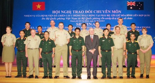 人民军队记者忠坚报道:10月26日在胡志明市,越南维和中心、国防部175军医院与澳大利亚军队维和培训中心联合举行了题为执行联合国维和特派团二级野战医院任务的业务会议。越南国防部、澳大利亚驻胡志明市总领事馆、澳大利亚军队军医等代表出席。