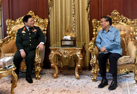 越南国防部部长吴春历大将拜会老挝人民革命党中央总书记、国家主席本扬
