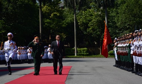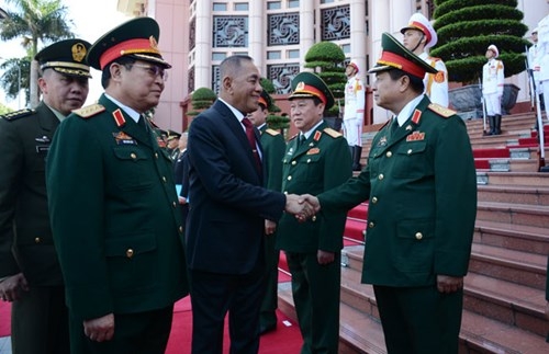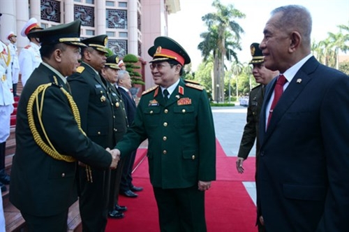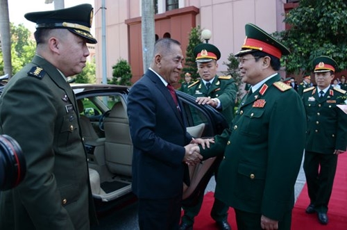 | 越南国防部长吴春历大将迎接印尼国防部长雷亚库都(图片来源:人民军队报) |