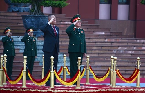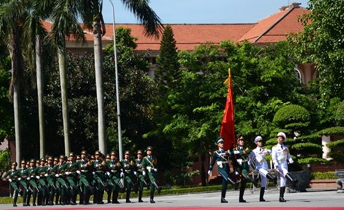 | 两位部长检阅越南人民军仪仗队(图片来源:人民军队报) |