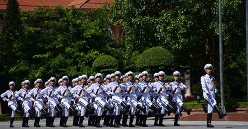 | 越南人民军仪仗队在欢迎仪式上进行队伍检阅(图片来源:人民军队报) |