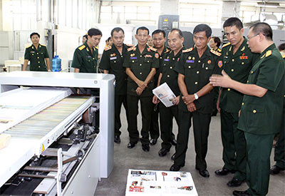 人民军队记者明阮报道:在老挝人民军队报和印刷企业代表团的访越期间,于8月1日,由老挝人民军队报副总编辑坎超∙康威瑟中校中校为团长的老挝人民军队报和印刷企业代表团已探访了越南人民军总政治局2号印刷公司和国防部泰山总公司。