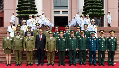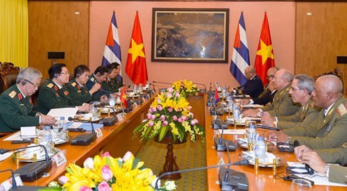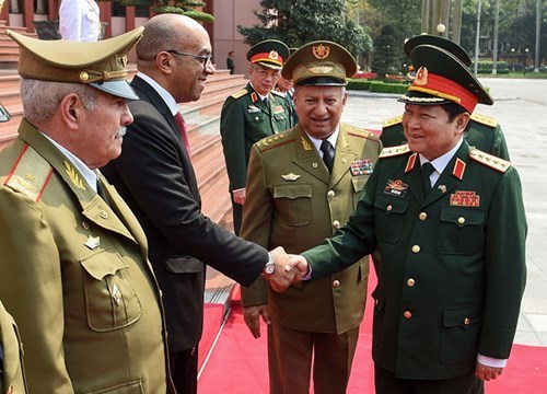 陈大光高度评价越南国防部与古巴革命武装力量部在各方面的密切合作关系,对两位部长之间的会谈结果,尤其是双方所签署的2017-2019年阶段合作计划表示赞同。在当前地区和世界局势下,强化两国防务合作具有至关重要的意义。值此之际,陈大光向古巴国务委员会主席劳尔·卡斯特罗以及古巴党和国家领导致以亲切问候。