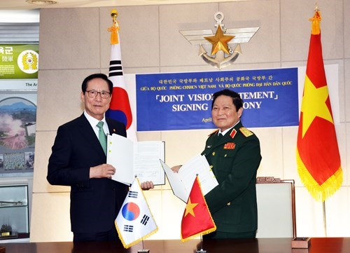 吴春历部长与宋永武(Song Young-moo)部长签署越韩至2030年防务合作愿景声明(图片来源:人民军队报) |