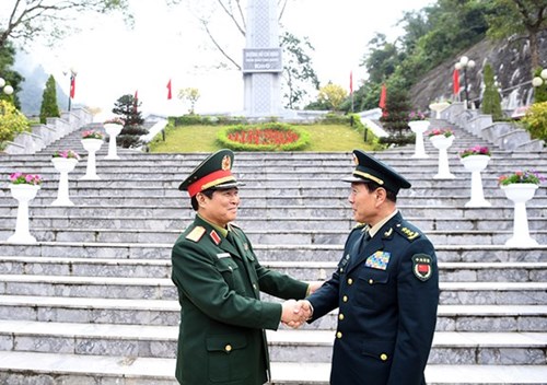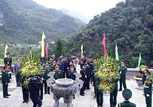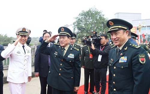 此前,越共中央政治局委员、中央军委副书记、国防部部长吴春历大将和中共中央军委委员、国务委员、国防部部长魏凤和上将以及两国代表团在胡志明祠和在高平省和广县长河乡北坡国家特别遗迹区敬香献花。