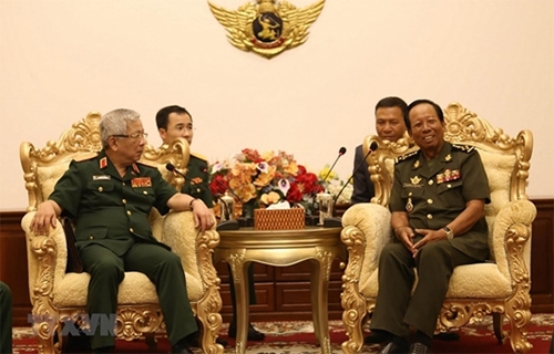 *此前,在柬埔寨国防部总部,阮志咏上将和柬埔寨王国国防部国务秘书宁帕(Neang Phat)大将共同主持召开第四次越柬防务政策对话。
