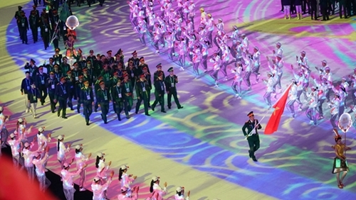 国际军事体育理事会高层领导,中共中央总书记、国家主席、中央军委主席习近平同109个参赛国的9000多名代表、运动员以及四万名观众出席开幕式。越南人民军总参谋部副总参谋长冯士晋中将在座。