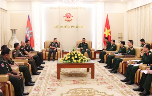 *同日上午,在国防部总部,黎詹上将会见了正在对越南进行工作访问的柬埔寨王家军副总司令兼宪兵司令绍速卡(Sao Sokha)大将。黎詹上将和绍速卡大将一致认为,越柬是邻国,两国国防安全问题有着密切相连的关系。双方领导高度评价柬埔寨王家军宪兵司令部与越南军队各单位的合作,尤其是与第七军区、边防部队司令部、总政治局军队安全保护局、总参谋部军训局等单位的合作。双方一致认为,上述结果为巩固两国各军队单位之间的合作乃至两军关系作出重要贡献。(完)