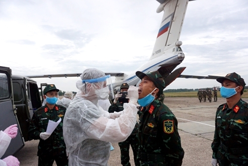 8月19日0点25分,白俄罗斯比赛组委会的医务人员在机场对越南狙击赛队进行新冠病毒检测后,东道国按照传统仪式举行了欢迎仪式。当天4点,该赛队前往白俄罗斯布列斯特郊区38号特殊作战旅训练场隔离区。