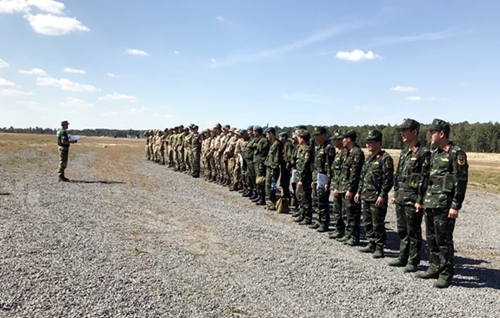 人民军队:越南人民军狙击参赛队从隔离点转到布列斯特训练场,接收武器装备和开始熟悉训练场。