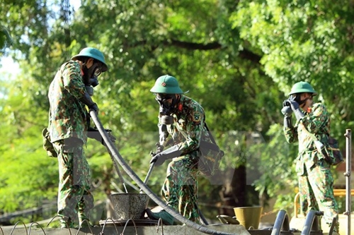 化学部队进行消毒以防止新冠肺炎疫情扩散蔓延(图片来源:越通社) |