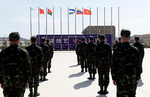 欢迎仪式上,东道国举行庄严的升旗仪式,正式标志着越南人民军队在2021年国际军事比赛“安全环境”项目的参与。今年是第三年越南人民军化学兵种成立参赛队,开展训练并启程赴中国参加“安全环境”项目的比赛。