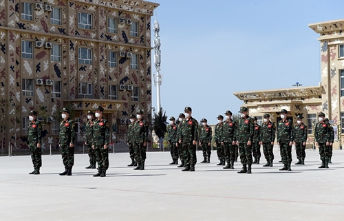 越南金星红旗在中国新疆库尔勒军事基地迎风招展(图片来源:人民军队报) |
