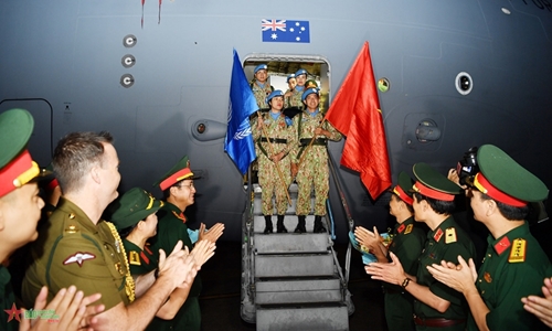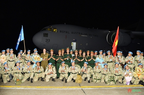 承载越南四号二级野战医院官兵回国的澳大利亚皇家空军的C-17军用运输机于7月9日22时许降落在河内内排国际机场。越南维和局为四号二级野战医院举行欢迎仪式。国防部直属各机关、单位、越南维和局、103军医院、军医学院的领导代表,澳大利亚驻越南国防武官处代表以及四号二级野战医院干部、工作人员家属出席仪式。