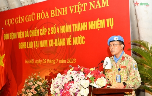 越南维和局局长、越南参加联合国维和行动国防部指导委员会常设机关主任范孟胜大校在仪式上发表讲话时表示高兴地迎接并表彰四号二级野战医院官兵出色完成任务载誉回国。范孟胜大校强调,在南苏丹特派团的一年任期中,四号二医院野战医院向国际友人展现了一个亲善友好的越南国家和越南人形象,给国际友人留下了美好的印象。