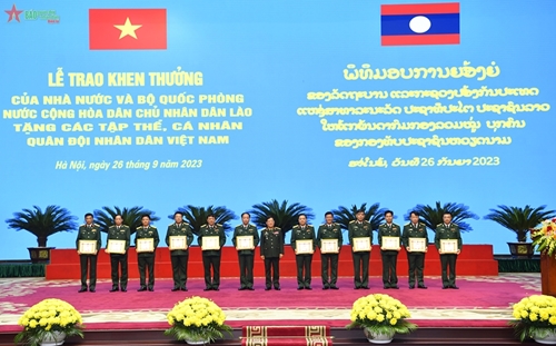 梁强大将强调,实践证明,越老两国命运始终紧密相连,这个国家的稳定和发展也是对方国家稳定和发展的条件和动力。梁强大将肯定,此次颁发的劳动勋章、英勇勋章、荣誉证书是老方对越南人民军集体和个人的突出贡献和成绩的认可。