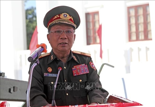 老挝政府副总理、国防部长占沙蒙•占雅拉(Chansamone Chanyalath)大将,越南驻老挝大使馆临时代办潘明战,越南驻老挝军事武官机构代表等代表出席。