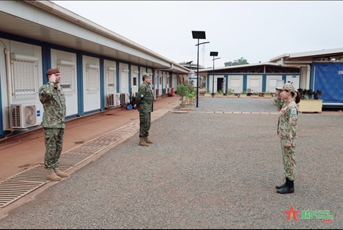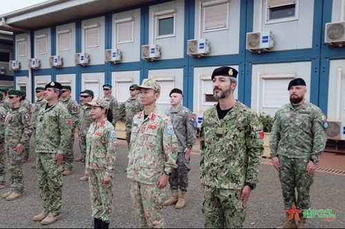升旗仪式上,欧盟驻中非军事培训团指挥长托尼亚·班兰·科内尔(Tonea Banlan Cornel)少将致辞,祝贺越南人民军队成立日,强调越南派军官参加欧盟驻中非军事培训团的重要作用和意义。 这是一个特殊的里程碑,肯定了越南与欧盟在和平、稳定和可持续发展方面的良好伙伴关系。