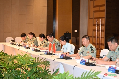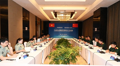 6月3日,在对中国进行工作访问期间,越南国防战略研究院院长武疆决少将、博士、副教授与中国军事科学院军队政治工作研究院院长黄文涛少将共同主持越南国防战略研究院与中国军事科学院关于“收集越中两军的团结友谊、胡志明与毛泽东在抗法和抗美战争中的团结思想的图片和文献”的联合课题研究工作组磋商。