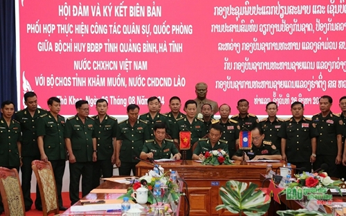 广平省边防部队指挥长郑青平大校、河静省边防部队指挥部指挥长裴红青大校及甘蒙省军事指挥部指挥长布恩•洛特•布普帕万大校共同主持会谈。