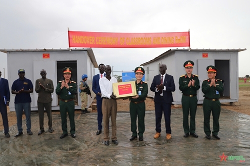 9月24日上午,在启程回国,结束一年在阿卜耶伊履行维和任务的越南二号工兵队已将教室移交给阿卜耶伊男生学校。UNISFA特派团代理团长兼军事力量司令阿米尔•穆罕默德•乌姆拉尼(Ameer Muhammad Umrani)准将、国际同事和当地人民一同出席移交仪式。