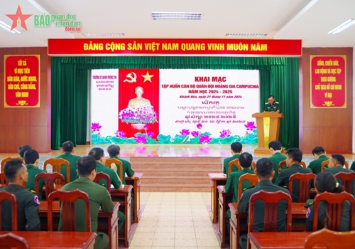 接下来,通信军官学校举行2024-2025学年柬埔寨王家军干部培训班开班典礼。