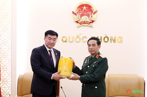 人民军队:12月19日下午,在国防部总部,越共中央政治局委员、中央军委副书记、国防部长潘文江大将会见蒙古国国防部长Byambatsogt Sandag先生。