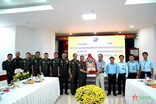 武高军少将向代表团致以祝贺,同时向柬埔寨首相洪玛奈、柬埔寨皇家军队陆军司令部领导致以问候,祝愿越柬两国之间的团结关系日益向前发展。