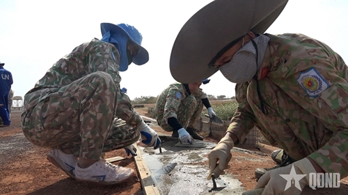 目前,越南工兵队正在为加纳维和力量修建智慧营房,施工的位置与Highway基地相距遥远。在炎热的天气条件下,越南工兵的第一分队已战胜种种困难挑战,充分发挥集体的力量与智慧,推出了许多创意,加快施工工作进度。