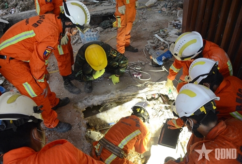 此外,救援队还派出一个搜救队,与缅甸、阿联酋救援力量配合,搜寻在医院内被埋下的人员。