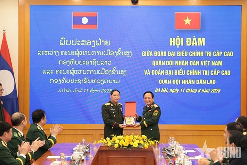 郑文决大将对老挝国防部长期以来给予的支持以及派遣老挝人民军官兵方队参加越南社会主义共和国国庆80周年(1945.9.2-2025.9.2)阅兵游行活动表示珍重感谢。越南国防部期待老挝国防部领导和老挝人民军总政治局主任同志出席此次活动。