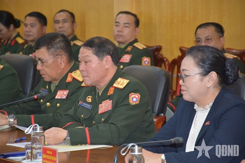 老挝人民军国防部副部长、总政治局主任冯松•英潘平中将对越南国防部政治学院进行工作访问(图片来源:人民军队报) |