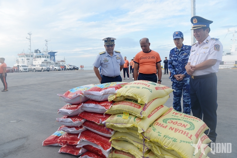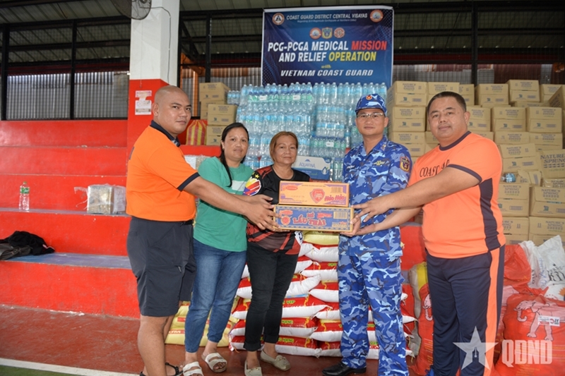 根据越南国防部领导和越南海警领导的指示,正在对菲律宾海岸警卫队进行访问交流的由海警二区司令陈光俊少将率领的越南海警代表团已与菲律宾政府和当地居民携手抗击自然灾害。