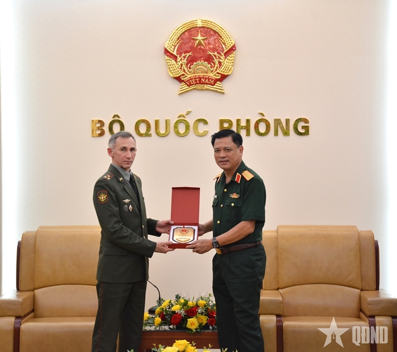 阮长胜上将祝贺Belosludtsev Sergey Vladimirovich大校被任命为俄罗斯联邦驻越南国防武官,并相信Belosludtsev Sergey Vladimirovich大校将为两国防务合作做出卓有成效的贡献。