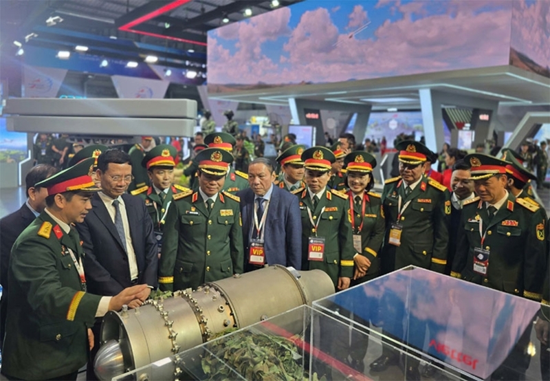 越共中央委员、中央军委常委、越南人民军总参谋长、国防部副部长阮新疆大将与代表团参观2024年越南国际防务展(图片来源:人民军队报) |