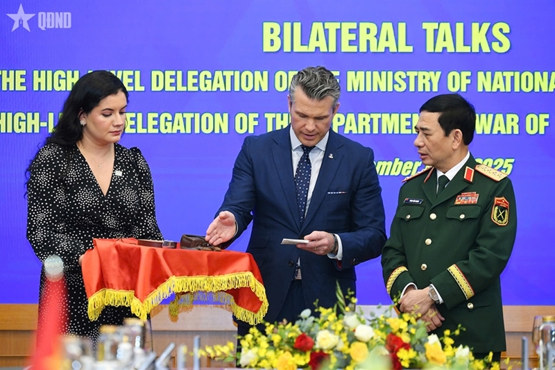 会谈上,潘文江大将强调,美国战争部长的此次访越在庆祝两国建交30周年(1995-2025)之际进行,具有重要意义,为进一步深化越美致力于和平、合作与可持续发展的全面战略伙伴关系以及双边防务合作做出贡献。