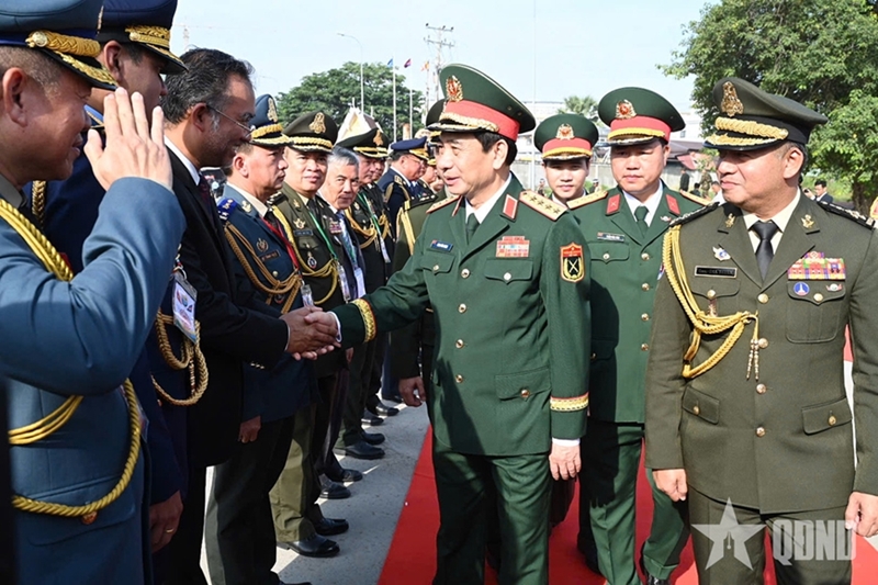 越南代表团由越共中央政治局委员、中央军委副书记、国防部长潘文江大将率领。欢迎仪式在柬埔寨副首相兼国防大臣迪亚•塞哈大将的主持下庄重举行。