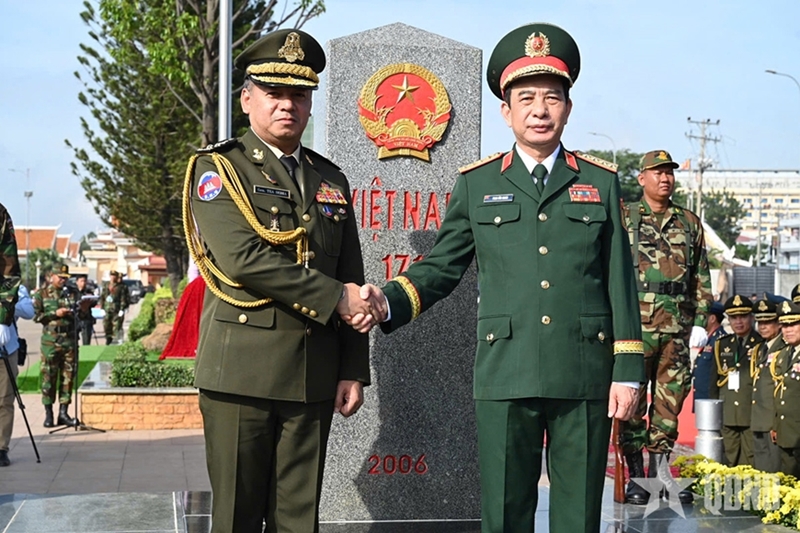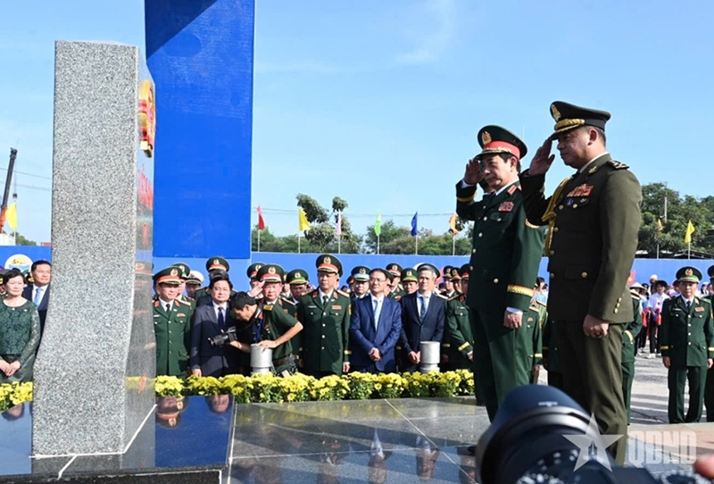 第二届越柬边境国防友好交流活动于11月13日至14日在越南西宁省和柬埔寨柴桢省举行。昨日(11月13日),两国代表团在西宁省参加了多项富有意义的活动,如:在木牌国际口岸种植友谊树、观摩两国军队联合军医演练、出席边沼小学半寄宿教学楼项目(顺林村、本沼社)的落成典礼、参加西宁省隆顺社隆强村与柴桢省斯瓦伊捷县莫诺鲁姆社奥塔莫村的跨境居民区缔结友好仪式,并举行会谈、签署及见证多项合作文件。