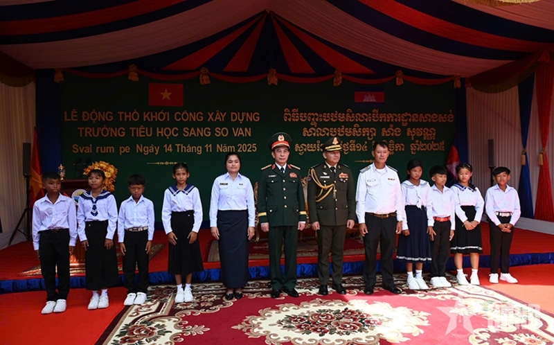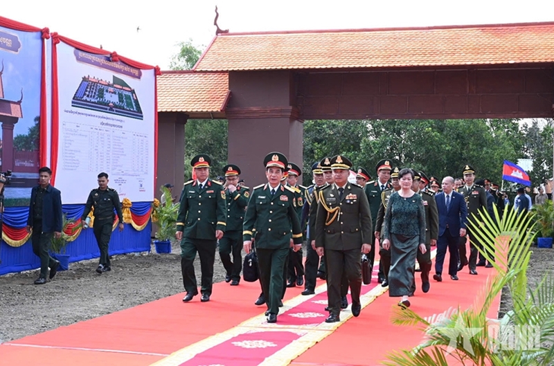 潘文江大将在开工仪式上发表讲话时强调,这不仅是一所新学校,而且还是越南—柬埔寨传统友谊团结的生动象征,体现两国国防部和军队对教育事业,特别是对青年一代——国家未来主人的深切关怀。